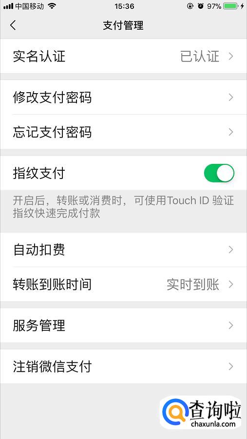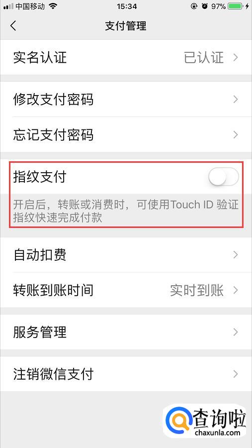 进入之后可以看见“指纹支付”,如图所示,此时是未开启状态;