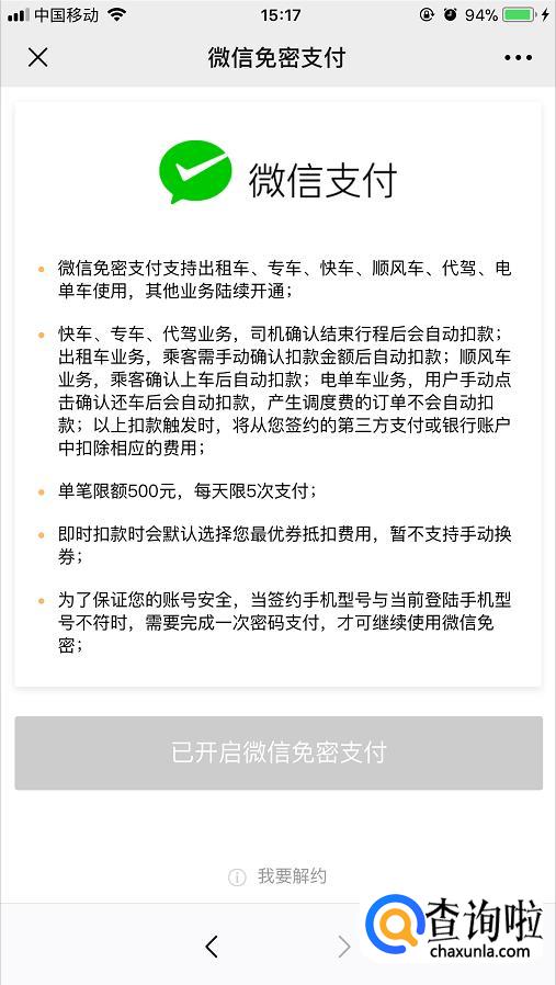 滴滴出行免密支付仅限于微信的“滴滴出行”。
