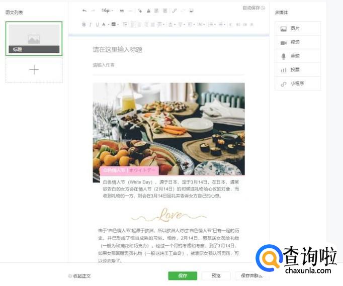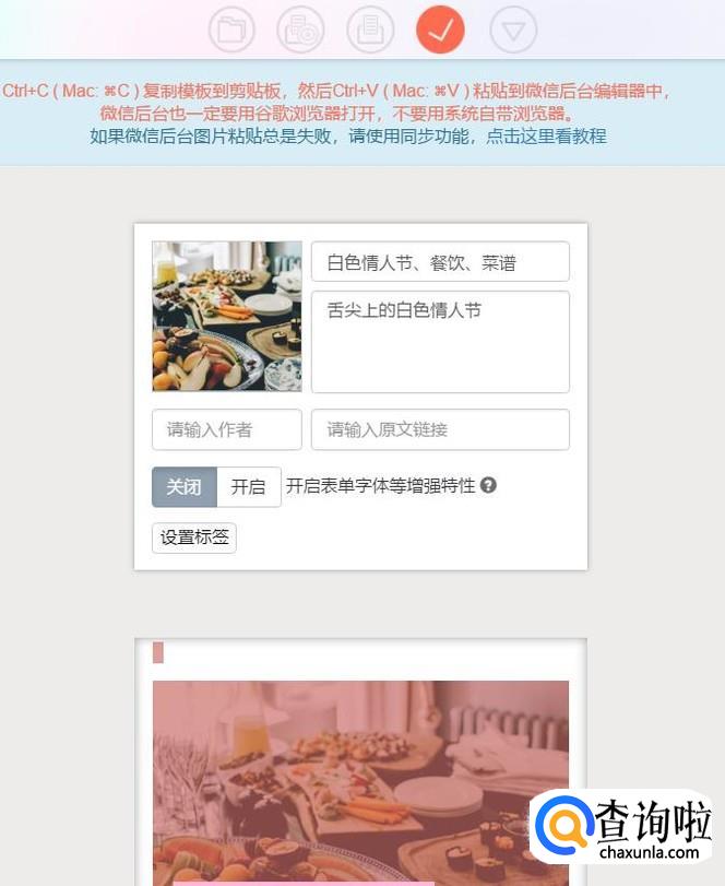 ctrl+c复制模板到粘贴板中,然后ctrl+v复制到微信后台编辑器中,漂亮的微信文章排版就完成了。