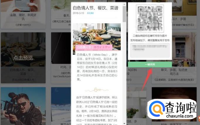 点击你想要的模板,选择一键采用,如下图所示内容。