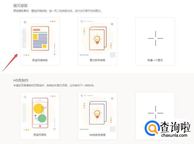 然后在主页面中找到“挑选风格排版”点击进入开始操作。