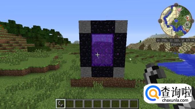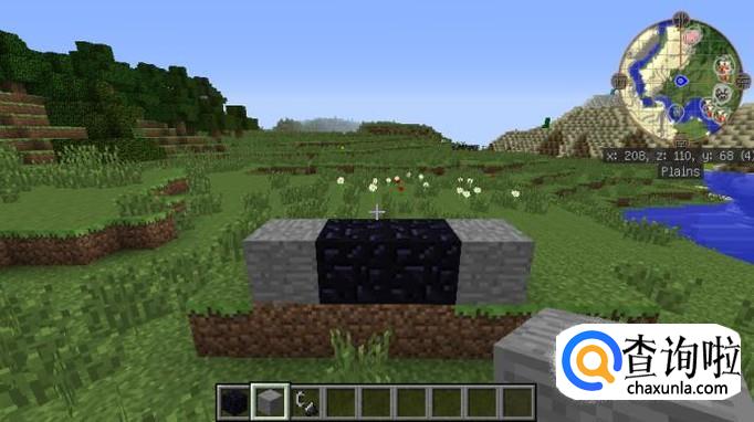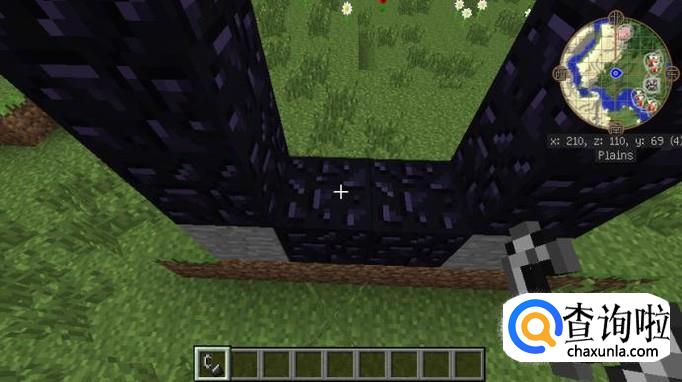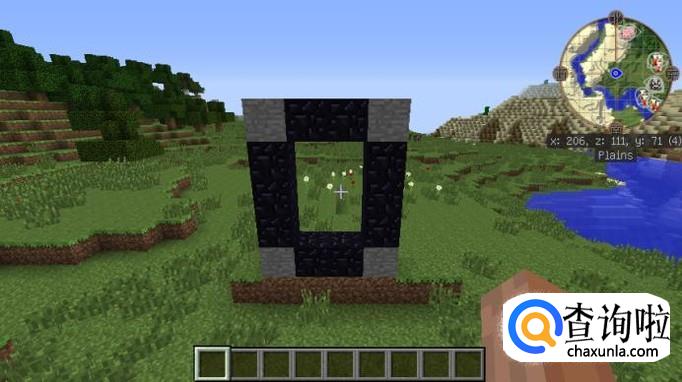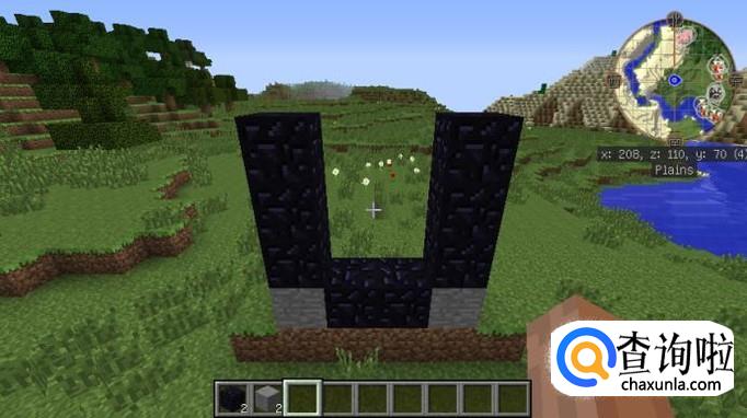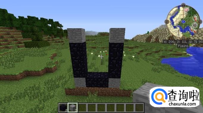 然后在两个石头的旁边放上黑曜石之后,整个传送门的结构就已经完成了,如图所示