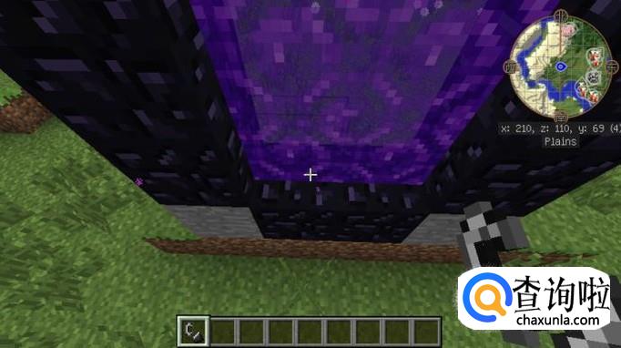 最后拿出打火石,对着最底下的黑曜石上方点火即可,如图所示