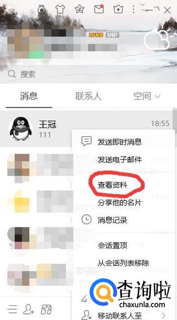 首先找到想要查看的QQ好友,然后右键单击唤出菜单,点击菜单中的“查看资料”,进入好友的资料卡