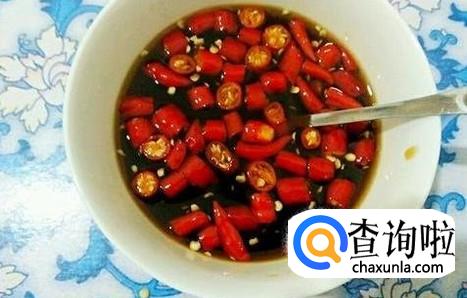 把小米辣切成小丁,放到碗里加3勺生抽、3勺酸醋进去,然后再加小半碗凉开水搅拌均匀备用。