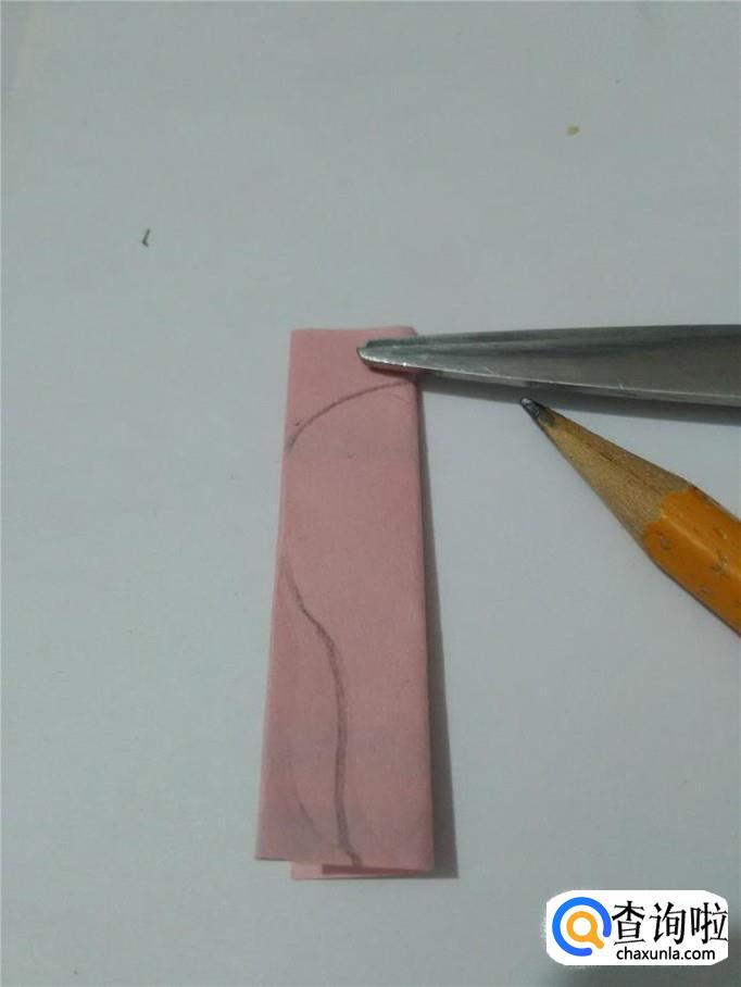 再用剪刀把两条双直线剪空,左端要留一小段不剪。