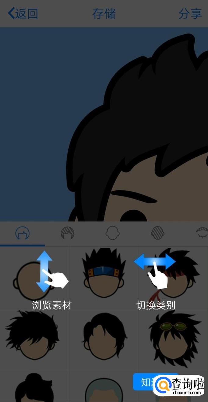 接着,可以下拉宣和不同发型,左右选择,眉毛,脸型,眼睛等等自己喜欢的造型。