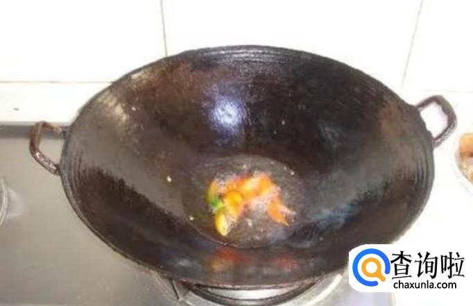 锅里面倒一些菜油,烧辣以后把辣椒倒进去,煸香。