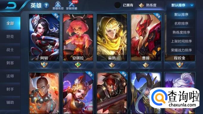 接着选择荣耀战力排序,如下图所示。