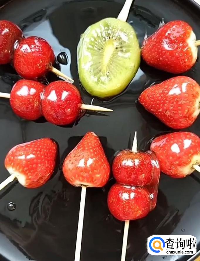 最后酸甜可口的糖葫芦就制作完成啦!装入盘中放凉即可享用啦!