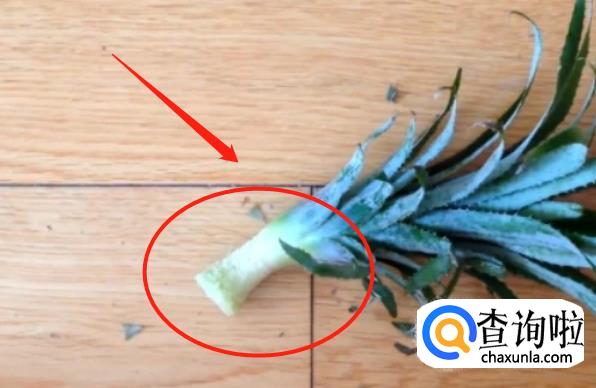 将栽培的菠萝头切好后,把菠萝头底部的椰子去除掉,把根部漏出来,记住不要沾水哦,如果有水请晾干后进行下一步。