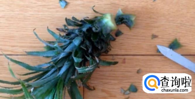 将菠萝的头部切下来,也就是长了叶子的部分,这部分是最有营养价值的。记住切菠萝头部的时候不能带有果肉哦,因为在栽培的过程中有果肉容易腐坏掉。