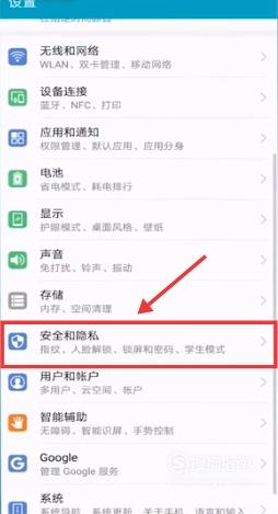 然后在设置里面下拉找到“安全和隐私”这一栏,点击进入。