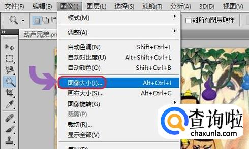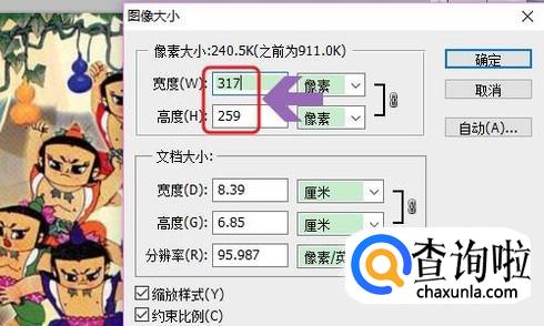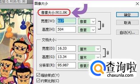 添加图片之后,点击PS软件上方的“图像”-“图像大小”,然后即可查看目前图片的大小了,比如小编上传的图片是911.0k...