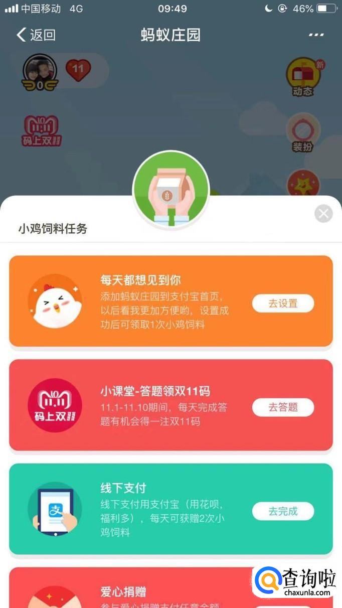 接着点击蚂蚁庄园,如下图所示。