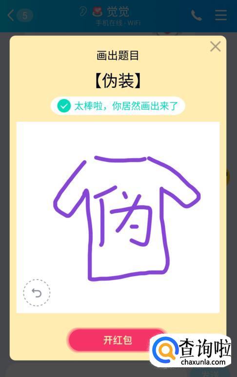 当我第一次看到题目为“伪装”的画图红包时,我的内心也是懵逼的,我也在想这是个啥?后来我随手花了了几笔,发现其实很简单。我们需要先画一个短袖,然后在短袖上写上“伪”字即可,是不是很简单呢?