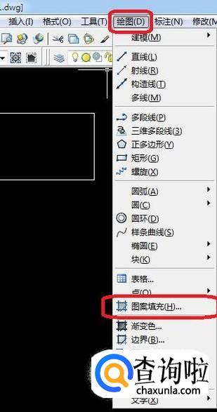 点击“绘图”,下拉菜单中选择“图案填充”。