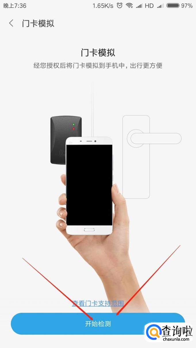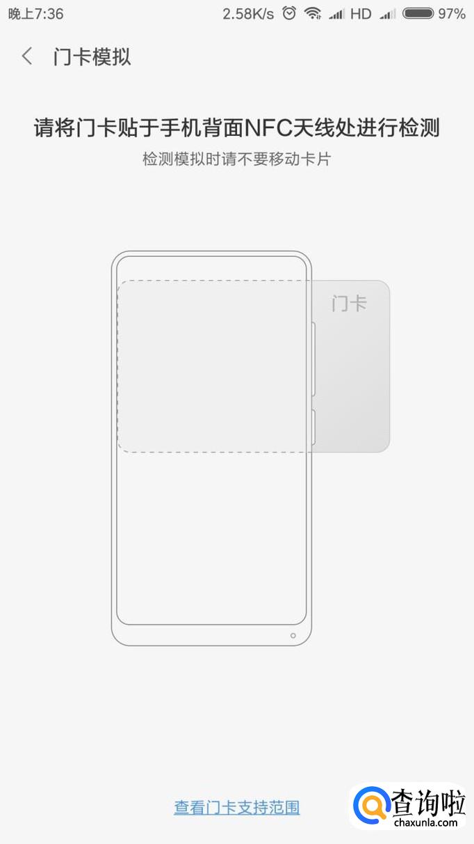 然后按照要求将门禁卡贴在手机背部靠上位置,即可开始模拟,时间一至两分钟