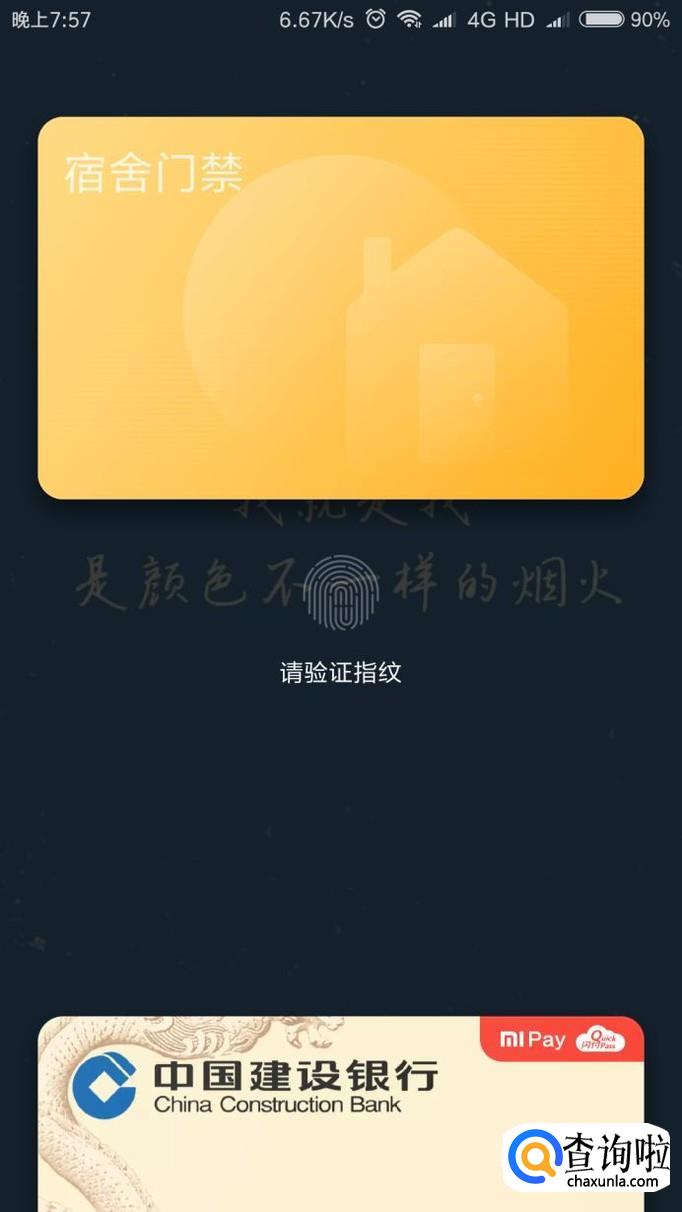 模拟成功后,使用时只需要在锁屏界面右滑至负一屏,点击“Mi Pay”,即可调出门卡,验证指纹后就可以刷门禁啦