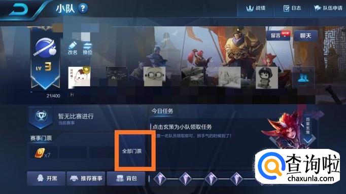 在小队的左下角有一个‘全部门票‘,我们点击一下它,然后点击‘使用‘。