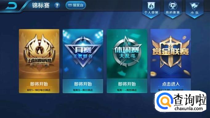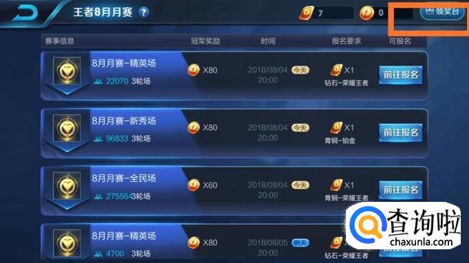 接下来是月赛的报名界面,我们点击一下右上角的“领奖台”,然后就可以拿战队金币换奖励了。