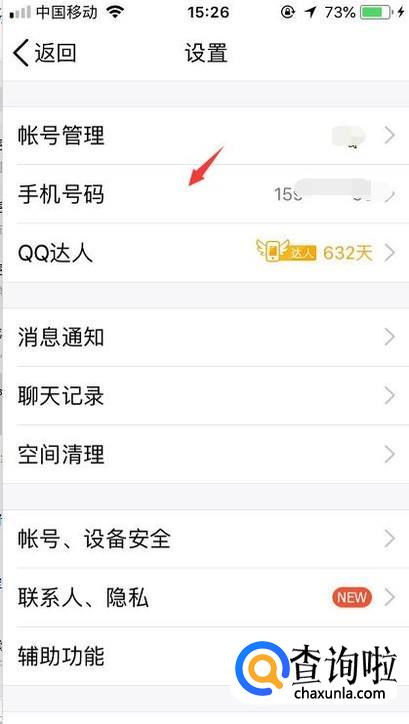 在设置功能里面第二个就是绑定的手机号码,点击进去。