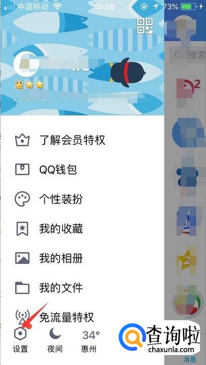 首先我们登录手机qq后点击左上角的头像进入到设置的功能。