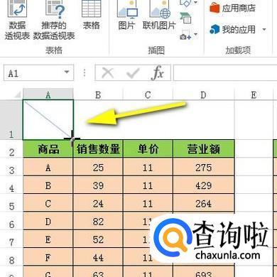 比如,下图中的表格,需要在A1单元格中从左上角到右下角插入一条分割线。