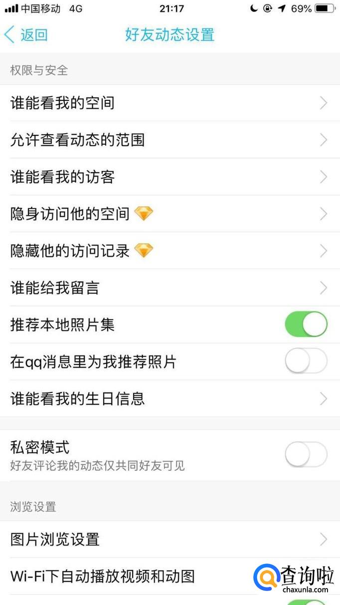 然后点击允许查看动态的范围,如下图所示。