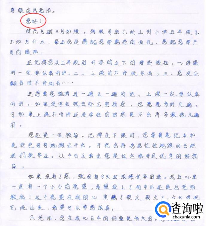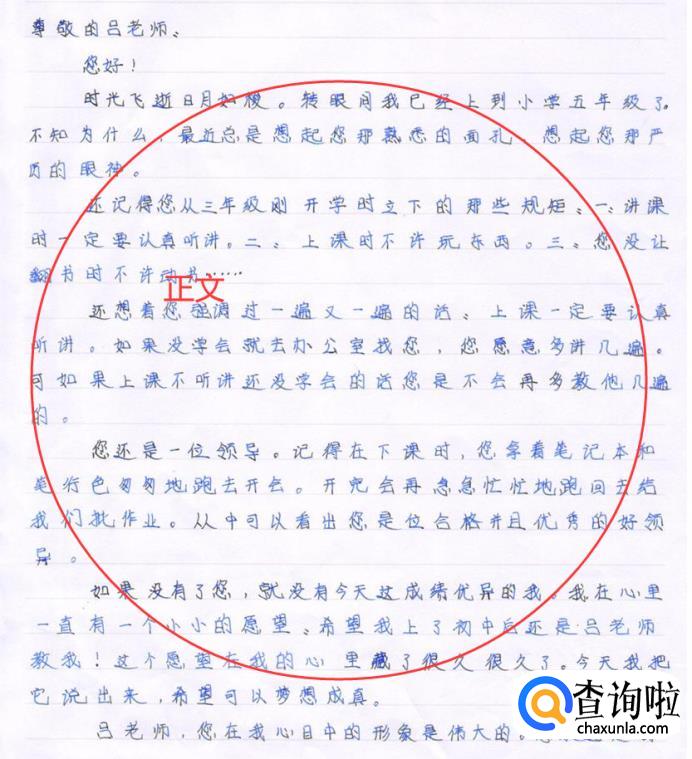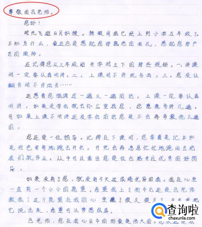 这里说的称呼就是对收信人的称呼,也就是XXX老师,一般都是“敬爱的XXX老师:”或“尊敬的XXX老师:”来写,写称呼的时候是不需要空两格的,洗完之后不要忘记打冒号“:”。