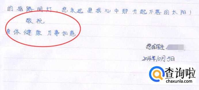 写完正文之后,我们要发给对方写祝福语,从而表达我们的对方的感激,也是一种对对方尊重。“祝身体健康!”“感谢你xxx!”“xxx,你辛苦了!”都是不错的选择。