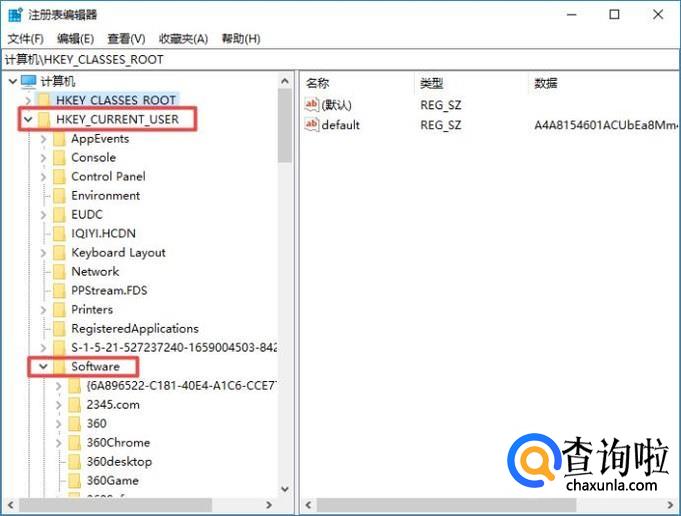 之后我们依次点开HKEY_CURRENT_USER,然后点开Software;