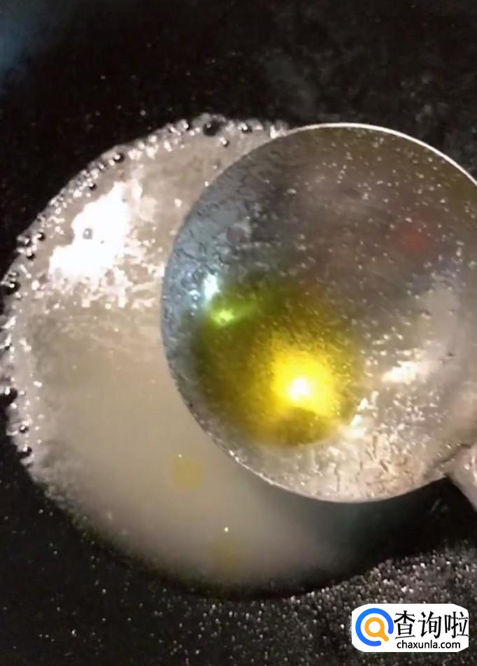 锅中放入半勺水,一大勺白糖,一点食用油,少许红烧酱油,熬至汤汁浓稠