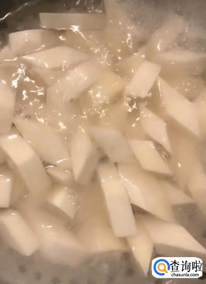 锅烧水,水开放入切好的芋头,煮一分钟捞出