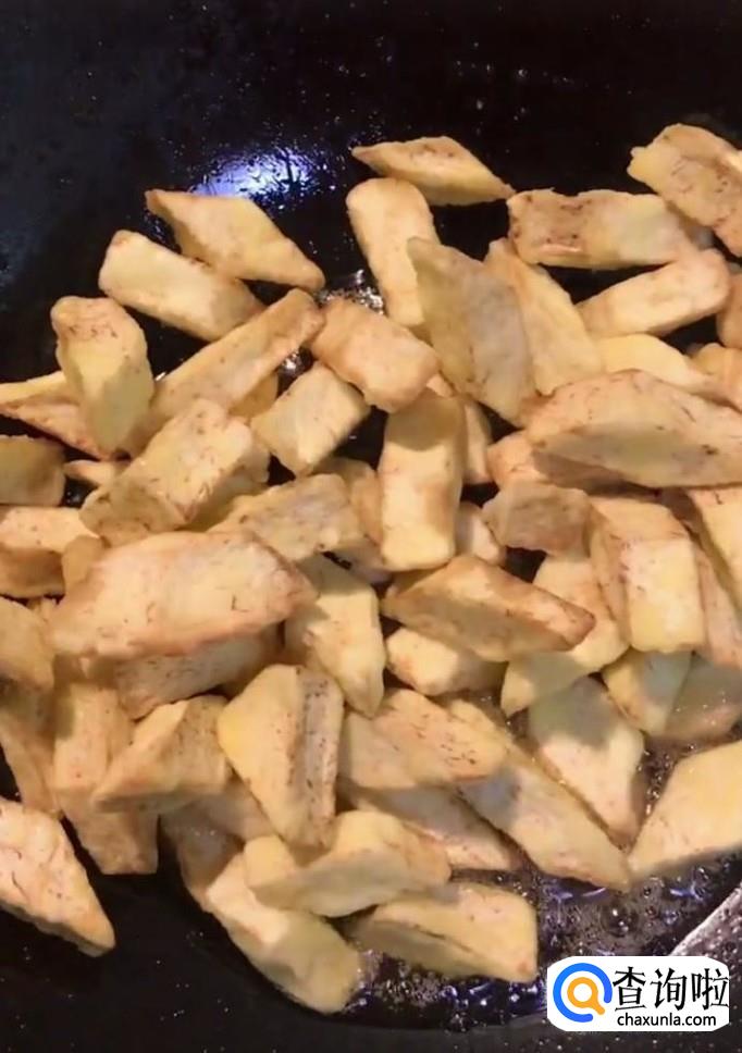 放入炸好的芋头,快速翻炒,撒一些芝麻
