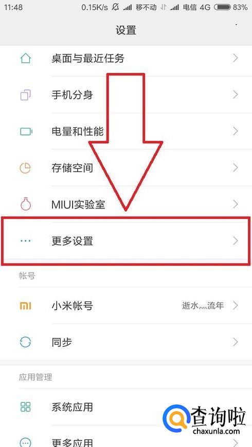 选择完后我们就可以打开手机的”设置“按钮,并在设置中下滑找到”更多设置“然后我们再点击进入更多设置。