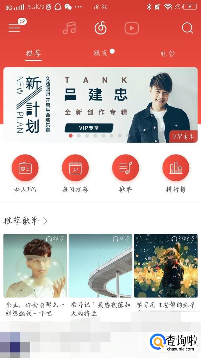 首先打开网易云这个app,如图1所示。进入网易云后会出现一个新的界面,如图2所示。