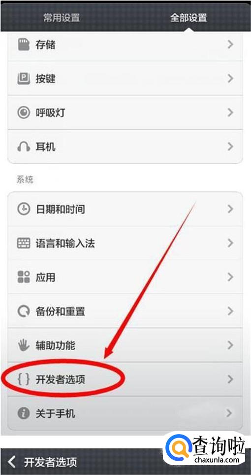 然后我们要在手机的设置里查找“开发者选项”,选择开启“USB调试”功能。