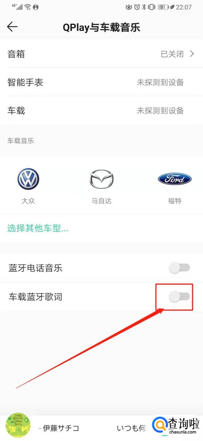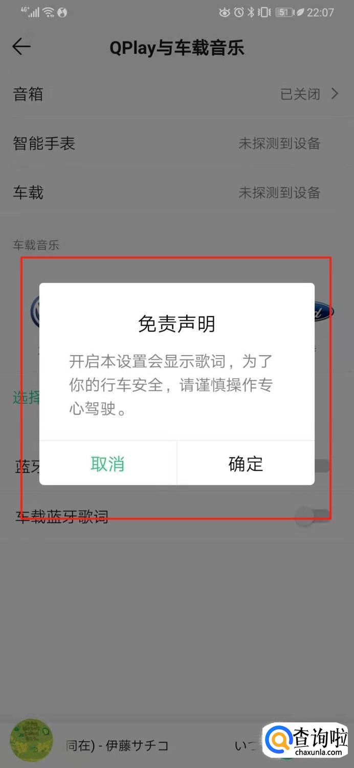 最后我们在最底下找到“车载蓝牙歌词”,点击确定。