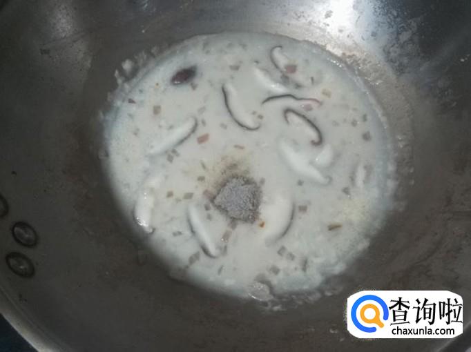 牛奶250克,香菇3个,洋葱,胡椒面3克,盐2克,香油,淀粉等适量。