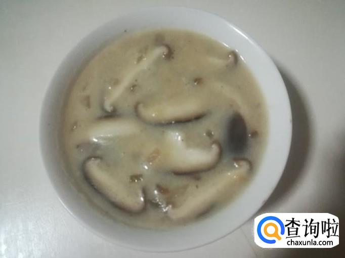 然后出锅盛入一个碗里,这样牛奶香菇汤就做好了。