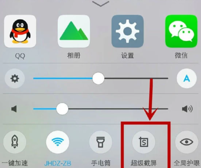 2、从屏幕底部向上滑动点击打开超级截屏。根据需要选择长截屏或者矩形截屏。