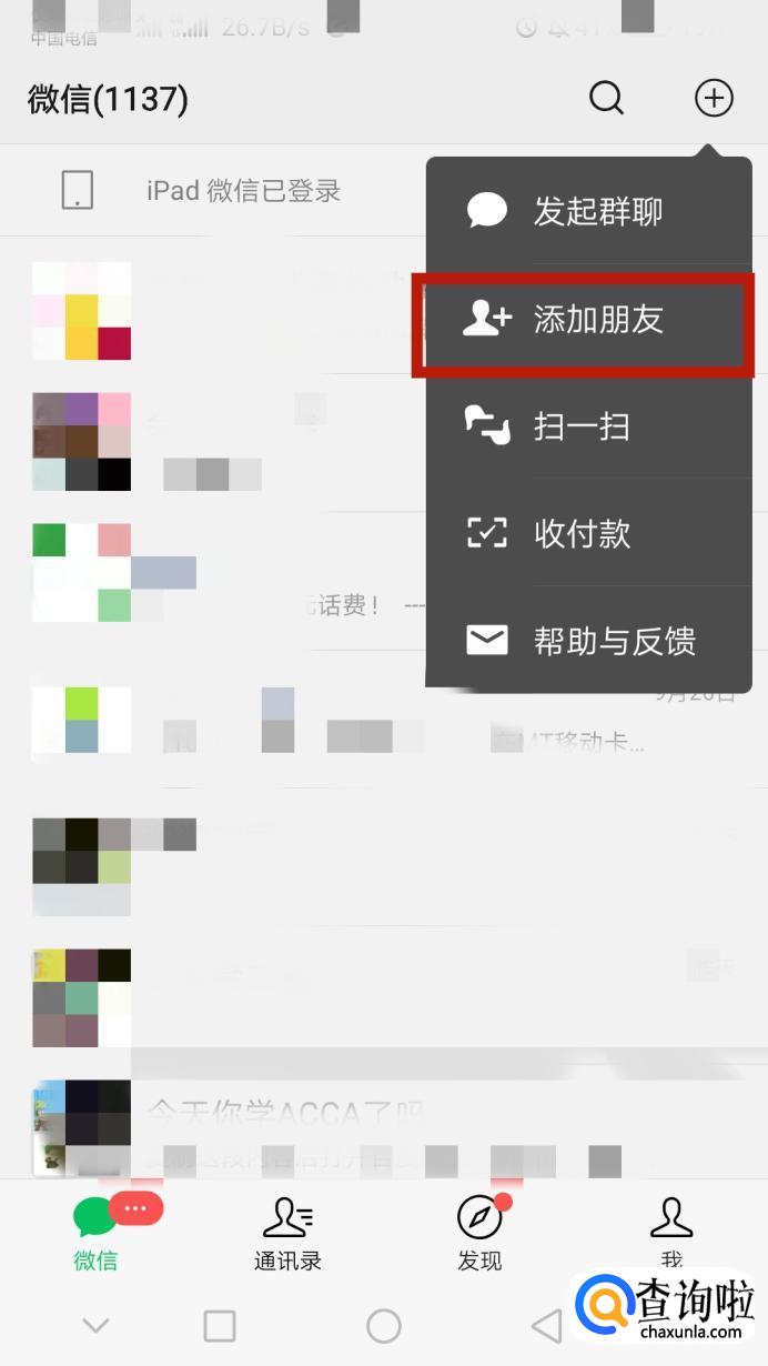 然后点击右上角的加号,选择添加好友。