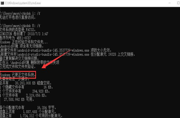 接下来,电脑就会自动对损坏的U盘进行修复,我们只需耐心等待即可。(如果U盘的文件比较多,修复的时间也会随之延长)那么怎么才算是修复完成了呢?当提示框中出现【Windows 已更正文件系统】,就表示U盘已经成功修复成功了。