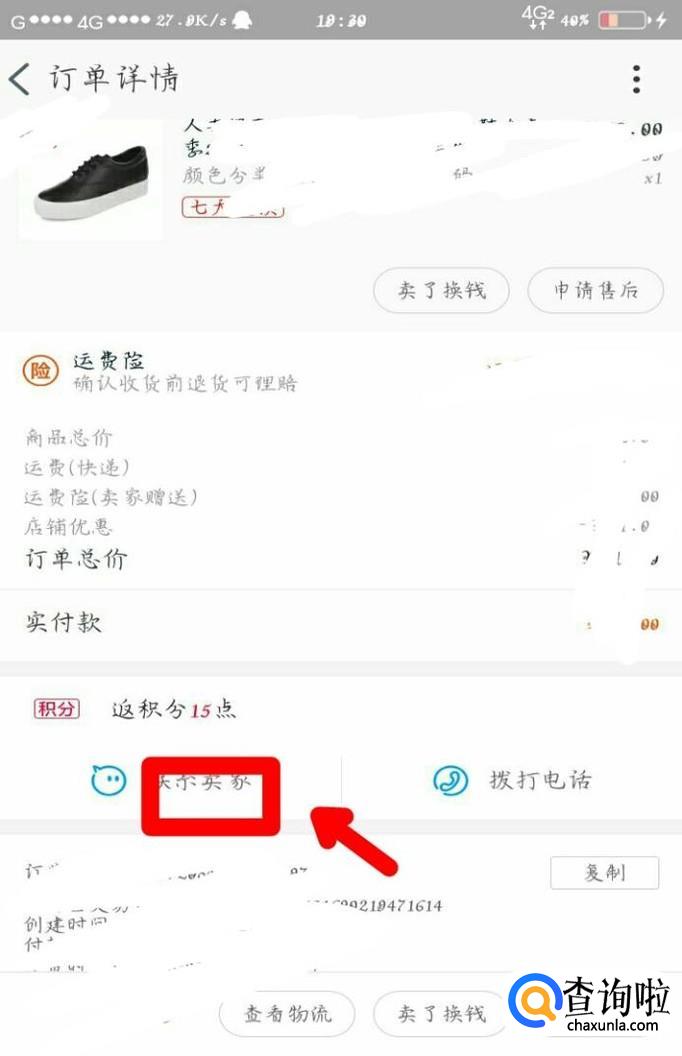 首先,我们先点击购买过的商品链接,进入到购买的画面,点击左下角的客服,如图所示。