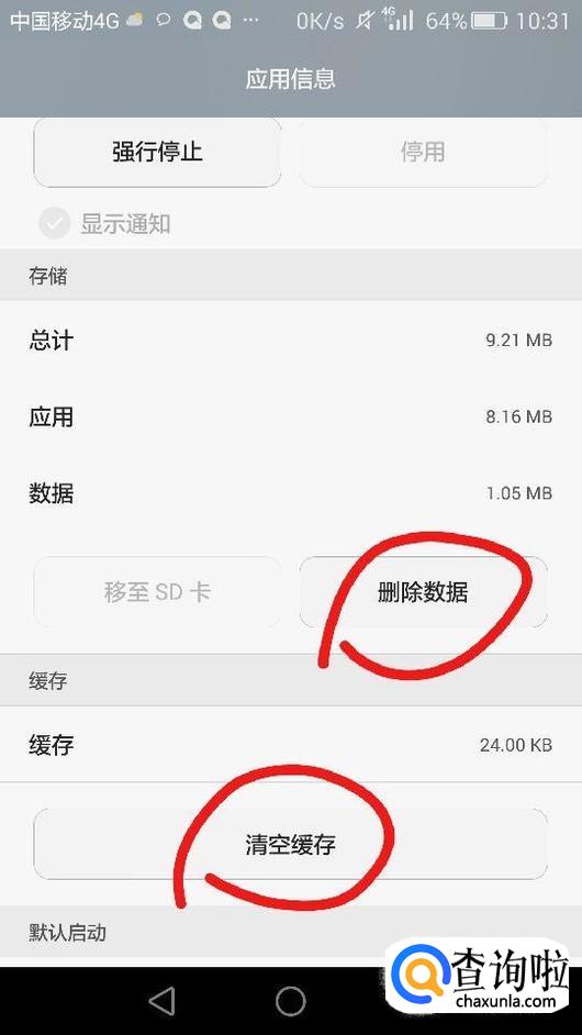 进入设置界面后,先后选择“删除数据”和“清空缓存。