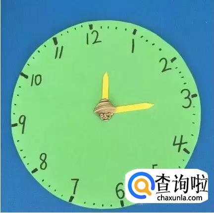 用和钟面不同颜色的卡纸,剪出分针和时针。并把按扣和固定的大头针等准备好。