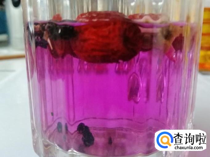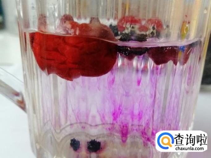 随着时间的推移,黑枸杞入水后在不断的变化,用温水泡出来的黑枸杞颜色特别漂亮,要是用热水一下子就变成墨水颜色了,不但不好看而且流失了营养。