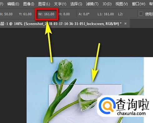这时,再看上面的属性栏这里, 已产生了数据,看W这里,这里即是刚才测量出来的白纸的宽度数值。