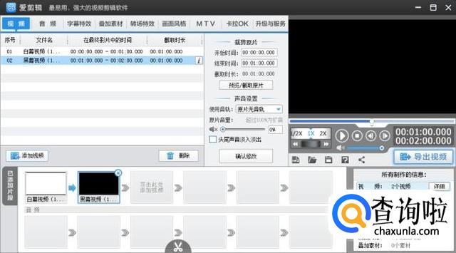 选中第一个视频后跳转回爱剪辑,然后点击“确定”。
